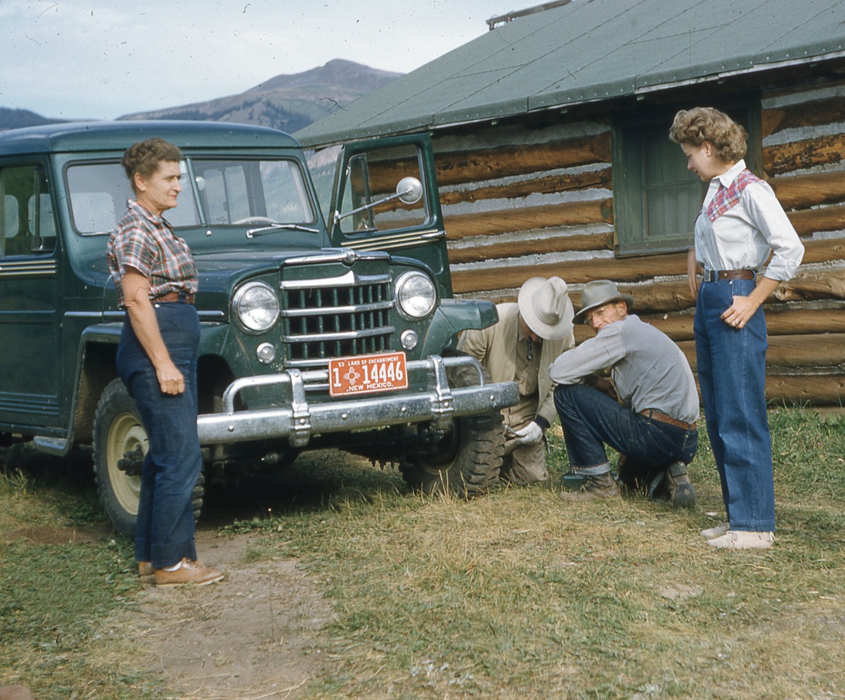 A Jeep station wagon with a 1953 Santa Fe County plate. The