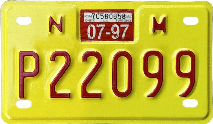 | Here’s another case where it’s hard to know whether a seller is trying to trick the buyer, or is operating out of ignorance himself, but time and again one sees modern vanity plates (such as the 1992 plate in the photograph above) for sale on various internet sites, described as “low number passenger plates,” and with correspondingly high prices. Since 1972 for cars, and 1975 for trucks, all regular issue New Mexico plates have contained both letters and numerals. Consequently, since those years, none of these plates have had serial numbers which could be called “low numbers” in the proper sense of the term. | ||||||||||||||||||||||||||||||||||||||||||||||||||||||||||||||||||||||||||||||||||||||||||||||
