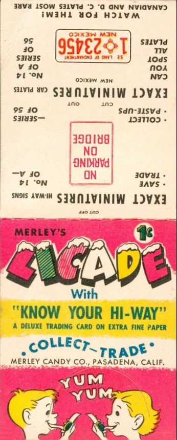 | In a fashion similar to baseball trading cards packaged with chewing gum, the Goudey Gum company of Boston enclosed small license plate trading cards with its gum for several years in the second half of the 1930s. A few other companies, including some foreign ones, produced similar license plate premiums packaged with gum or candy. | |||||