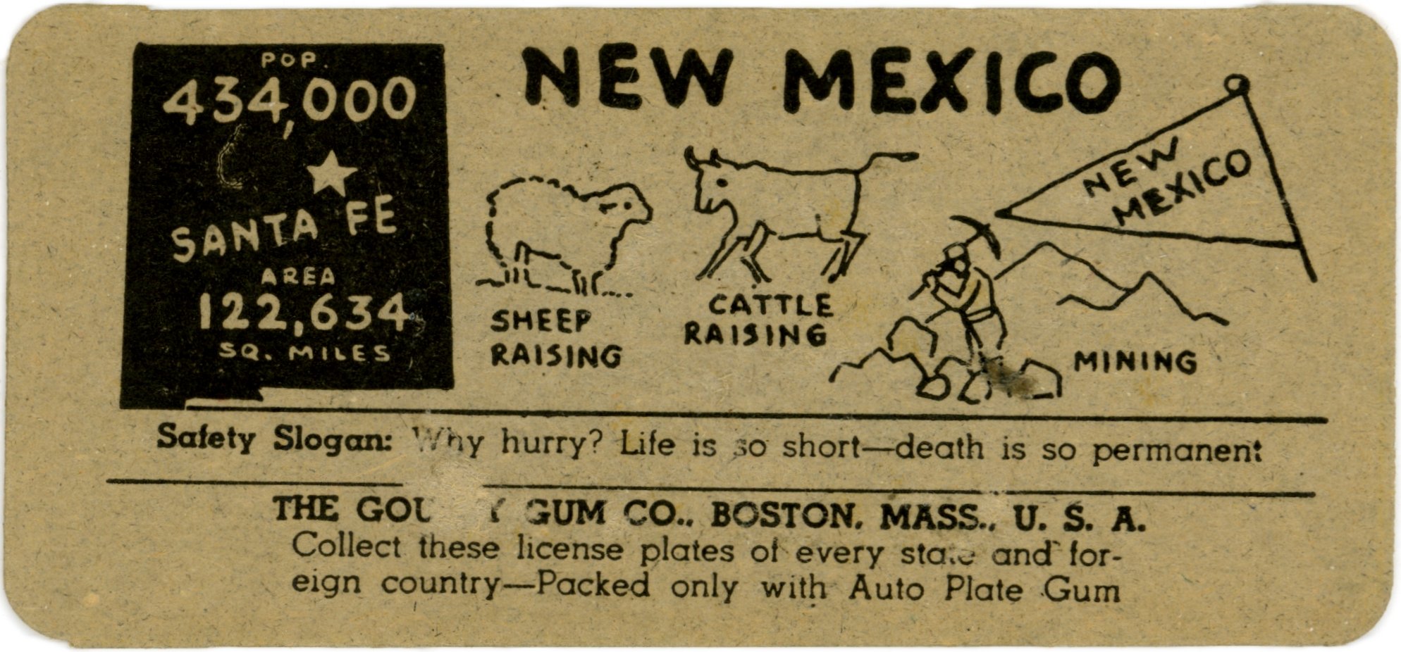 1949 Topps New Mexico License Plate Trading Card. Courtesy Charles Daughtrey