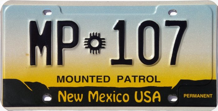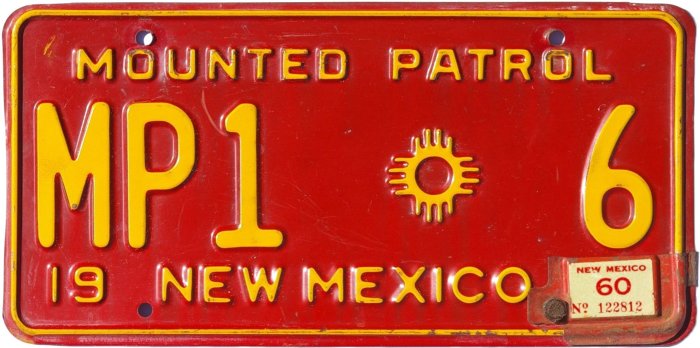 Mounted Patrol license plates had a 2-part serial number with the parts
